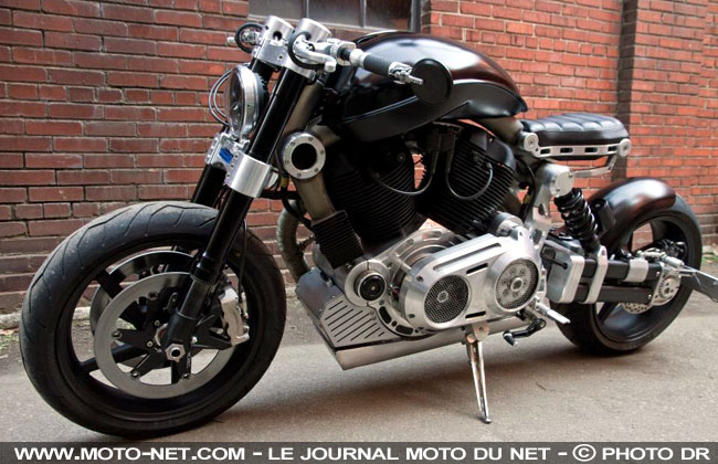 Développée en collaboration avec le motoriste américain S&S, cette cathédrale mécanique adopte un angle de 56° entre ces deux monstrueuses gamelles (1081,5 c chacune !) qu'alimente une injection électronique.