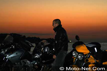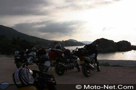 Au départ de Marseille, le ferry nous emmène en une nuit jusqu'à Bastia. La soirée à bord est l'occasion pour les nouveaux venus de lier connaissance, pour les anciens de fêter les retrouvailles et pour tous de parler moto jusque tard dans la nuit ! Hervé, "Grand Organisateur" de l'événement, en profite pour nous donner quelques détails complémentaires sur le road-book. Au programme : cinq jours pleins de balades à travers les montagnes. De quoi bien user les pneus, surtout sur les flancs car les lignes droites sont plutôt rares !
