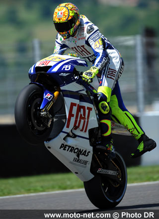 Valentino Rossi, Fiat-Yamaha (forfait depuis le GP d'Italie) : Blessé à la jambe depuis sa chute au Mugello, le champion du monde en titre Valentino Rossi a tenu à donner de ses nouvelles à l'issue du Grand Prix des Pays-Bas : le "Doc" craindrait-il que la domination de son coéquipier Jorge Lorenzo ne finisse par éclipser son aura auprès des fans ?