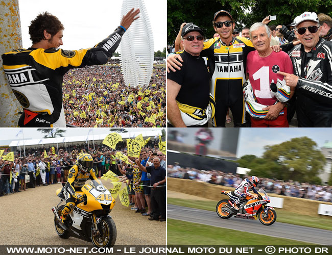 Heureux de cette victoire qu'il estime parfaitement légitime - contrairement à Honda, voir ci-dessous... - le Docteur est parti célébrer son succès en Angleterre où il participait pour la première fois au célèbre Festival de Goodwood. Accueilli en véritable héros par le public britannique, le Docteur a parcouru la route où se déroule la course de côte au guidon d'une YZR-M1 recouverte d'une livrée jaune et blanche, adoptée en l'honneur des 60 ans de Yamaha.