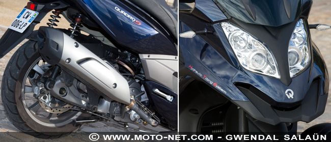 Pour autant, face à une concurrence accrue - Peugeot vient de lancer son Metropolis et Yamaha bosse sur son propre scooter 3-roues - et en attendant l'arrivée du modèle 4-roues reportée à 2014, il était temps de revoir plusieurs points critiqués par les utilisateurs du Quadro 350D, notamment son manque de vivacité moteur à bas régimes, le peu d'agilité de sa partie cycle et les vibrations moteur un peu trop présentes.