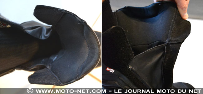 Rassurantes et correctement placées, ces protections présentent en outre l'avantage d'offrir le mix idéal entre la rigidité nécessaire à leur fonction et une forme de souplesse positive pour le confort. En clair, on se sent protégé sans avoir l'impression d'avoir chaussé les pompes en acier de Robocop !