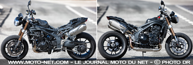 Esthétiquement enfin - mais les lecteurs de Moto-Net.Com, qui comme chacune sait ont un peu plus de chance que les autres, le savaient déjà -, le Speed Triple évolue par touches. On l'a vu, le double pot, le cadre apparent, le monobras sont tout nouveau mais restent fidèles à leurs ancêtres. On notera toutefois l'apparition de caches latéraux peints qui insistent sur le côté ramassé et "tout sur l'avant" de la bête.