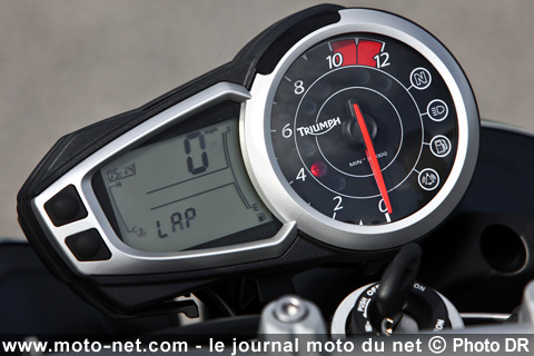 L'instrumentation mêle toujours un compte-tour analogique à un cadran digital, mais dispose désormais d'une jauge à essence. "Avec l'amélioration du confort de selle et une meilleure vue dans les rétros, un compteur plus compréhensible et une jauge figuraient sur la liste des voeux de nos clients", nous révèlent les Britanniques.