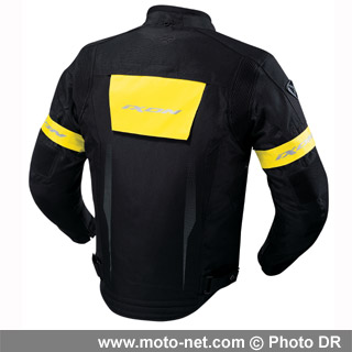 Ainsi, après la veste Halloween et le blouson Attack, c'est au tour du blouson textile Gallium de s'équiper de brassards au niveau des biceps et d'un large panneau dans le haut du dos.