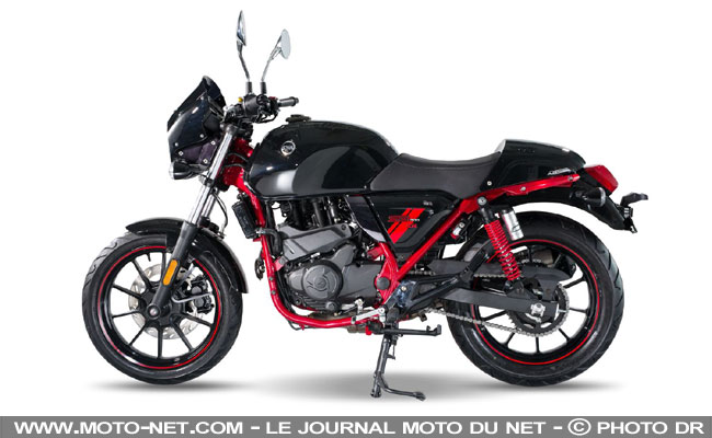 Equipé du monocylindre 4-temps refroidi par eau de 278 cc de la Wolf - importée en France à partir de 2013 au format 250 cc -, cet inédit roadster de 28 ch et 25,5 Nm de couple joue la carte du vintage avec son phare classique surmonté d'un saut de vent teinté, sa selle plate et sa coque arrière arrondie.