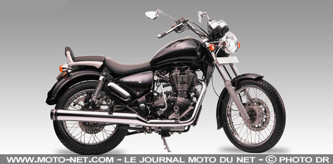 Coiffant désormais la gamme Royal Enfield (lire encadré ci-dessous), la Thunderbird 500 verse ouvertement dans le genre custom avec son guidon haut et ses nombreuses touches de chrome (silencieux, combinés arrière, support du dosseret de selle passager, etc.).