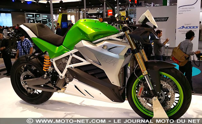 Energica, fabricant basé à Modène, décline sa moto électrique sportive Ego en roadster, dénommé Eva. Identique techniquement à la Superbike dévoilée en grandes pompes l'an dernier, cette moto équipée de périphériques premium (Öhlins, Brembo, Pirelli...) cracherait 135 ch avec un couple affolant de... 195 Nm, disponible immédiatement ! Comme la sportive, l'Eva est limitée à 240 km/h et serait capable d'effectuer de "100 à 190 km" avant recharge. Aussi spectaculaire que ses performances, sa batterie lithium-ion ne demanderait que "30 minutes" pour être rechargée à "85%" grâce à des chargeurs additionnels venant "booster" l'action de celui placé sous la selle ! Le prix de cette "usine à watts" dotée de l'ABS n'a pas été communiqué mais devrait être proche celui de l'Ego, fixé à 25 000 € hors taxes. La marque présentait aussi à Milan une série limitée de son Hypersport, l'EGO45, chargée de célébrer les 45 ans du groupe PRP auquel elle appartient. Construite naturellement à 45 exemplaires, cette version encore plus haut de gamme reçoit notamment des carénages en carbone et des pièces en alu de qualité aéronautique. |