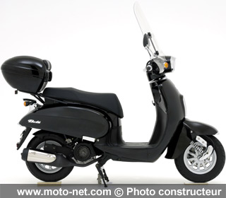 "Doté d’un moteur 4 temps à refroidissement par air issu du NS, le Besbi est vif à l’accélération et très efficace dans la circulation avec ses roues de 10 pouces qui lui confèrent une bonne maniabilité. C’est moins bien dès que l’on part sur des voies rapides avec une vitesse maxi trop juste. Le gabarit est correct et l’on n’est pas à l’étroit avec de la place pour les jambes. Les touches de chromes et la calandre grillagée font cossues alors que l’instrumentation reste minimale mais très bien présentée. Pour le transport, le Besbi reçoit un porte-paquets avec top-case de série afin de compenser le petit volume de coffre sous la selle. Il s’ouvre au contact, mais ne loge qu’un 1/2 jet. Le remplissage essence se trouve sur le plancher, sous une trappe à clé. On apprécie aussi les deux béquilles et le plancher plat".