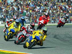 Rossi, auteur du record du circuit, part de la pole devant Gibernau, Capirossi et Hayden. Checa, Biaggi, Edwards et Barros forment le 2ème rang. Olivier Jacque, qui n’a pas réussi à régler sa moto, est en 21ème position sur la grille. Départ : une fois n’est pas coutume, c’est Rossi qui fait le hole shot devant Capirossi, Biaggi, Hayden, Gibernau, Checa, Ukawa, Bayliss et Edwards. Olivier Jacque, parti 21ème, a pris un bon départ et passe 13ème. Dès le 2ème virage, Capirossi prend la tête devant Rossi et Hayden passe 3ème devant Biaggi. Edwards et Barros passent Bayliss. Biaggi s’écarte légèrement de la trajectoire et Gibernau en profite aussitôt. Au 1er passage, Capirossi passe en tête avec le meilleur tour devant Rossi, Hayden, Gibernau, Biaggi, Checa, Ukawa et Edwards. Rapidement, un écart se creuse derrière Checa 6ème, Barros étant passé 7ème devant Ukawa, Edwards, Bayliss, Nakano, Abe et OJ.