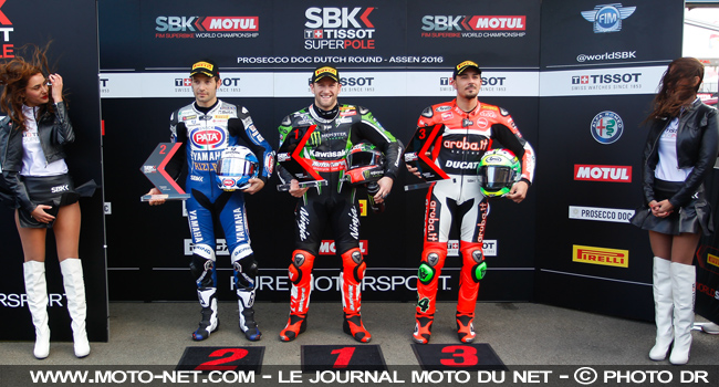 Après trois séances d'essai effectuées sur le mouillé, les pilotes du World Superbike se sont disputés la pole position néerlandaise sur une piste sèche. Tom Sykes sort vainqueur de cette épreuve délicate, loin devant Guintoli et Giugliano...