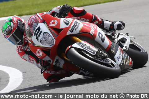 Troisième chrono de la SP1, son coéquipier Chris Iddon mènera le 5ème rang demain. Le n°2 et sa BB3 seront à surveiller du coin de l'oeil si le temps tourne à l'orage : regarder évoluer cet expert du Supermotard sur un circuit qu'il connait par coeur est un vrai régal, parole de Moto-Net.Com ! Les Italiens Claudio Corti (MV Agusta Yakhnich) et Alessandro Andreozzi (Kawasaki Pedercini) complètent la 5ème ligne. Leur compatriote Niccolo Canepa, parti à la faute à trois minutes de la fin de la SP2, placera sa Panigale Evo préparée par Ducati Althea en tête du 6ème rang, devant la Ninja Evo (mais officielle !) de David Salom.
