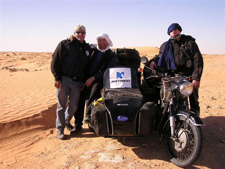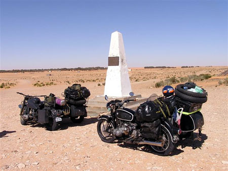 Il fait frais pourtant c´est l´autre côté de la Méditerranée. Il faut sortir rapidement de la " civilisation " et alors là ça commence à interpeller les mémés que nous sommes. Effectivement, nous sommes venues pour la piste, le sable, le sel, les nuits à la belle étoile mais aussi pour contrôler si nos pilotes et passagers sont capables de rapports simples avec l´environnement et les gens. Pour nous, pas de problème car une fois admis que le filtre à air d´une R75 n´est pas un casque allemand, la sympathie est acquise.