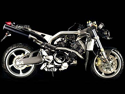 En approchant de la Voxan VB1, dans sa livrée grise, je ne peux m’empêcher d’en faire le tour. Cette superbe réalisation de Thierry Henriette (Boxer Design) force le respect, tant son coup de crayon, à l’instar de celui d’une certaine 916, n’a pas vieilli... La VB1 reste une des plus belles sportives que j’aie jamais vues et je ne me lasse pas d’admirer ses lignes tendues.