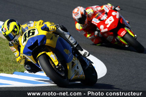 Délaissant la Yamaha YZF-M1 - qu'il a fait passer du milieu de la grille à la première marche du podium en un temps record - au profit d'une Ducati Desmosedici GP aussi rapide que difficile à maîtriser, le Docteur va tenter de contrer (retarder ?) l'inéluctable prise de pouvoir amorcée par la nouvelle génération, quitte à prendre le risque de se brûler les ailes...