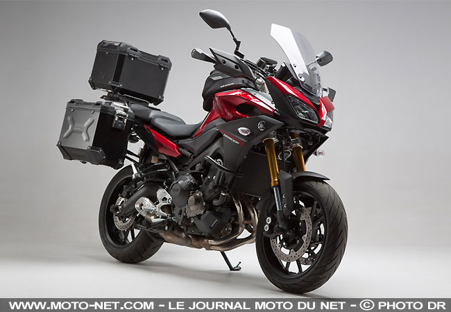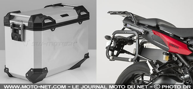SW-Motech transforme la MT-09 Tracer en routière au long cours grâce à ses valises en aluminium Trax Adventure, de 37 ou 45 litres. Les supports - inclus dans le kit - sont à démontage rapide, facilitant le retour aux lignes d'origine quand les valises restent au garage. L'ensemble est soigné et à un tarif compétitif : 939,95 €.