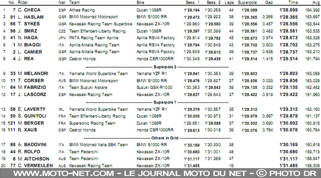 Le duo de choc partira donc de la meilleure place sur la grille demain midi et tachera de rééditer son exploit australien au nez et à la moustache des pilotes anglais... Derrière le n°7 d'ailleurs se postent deux sujets de sa Majesté : Leon Haslam est à un quart de seconde et Tom Sykes à une petite demie seconde.