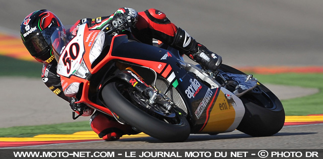 Sykes réagit rapidement et reprend sa deuxième place au freinage de la ligne droite des stands. La bagarre profite à Guintoli qui refait la jonction... Mais elle profite aussi à l'autre Aprilia officielle, la n°58, qui enfonce le clou en signant le meilleur chrono sur la piste. Rea occupe toujours la cinquième place et mène le peloton composé de Cluzel (!), Melandri, Baz, Checa et Giugliano.