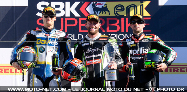 Au championnat, Tom Sykes conforte sa première place en totalisant 361 points, soit 23 de plus que son dauphin... Laverty qui compte un point de plus que son coéquipier Guintoli ! Melandri conserve sa quatrième place mais se trouve à 42 longueurs du leader.