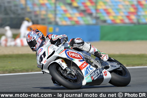 Son coéquipier Marco Melandri, dernier homme à pouvoir - mathématiquement - priver Checa de son premier titre mondial, pointe à la 14ème place mais devrait remonter dans le classement au cours de la seconde journée d'essai : après avoir passé des années à disputer les "45 minutes du Mans", le n°33 italien doit apprendre à tourner dans le "Bol d'Or" !