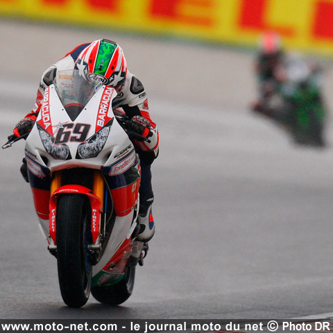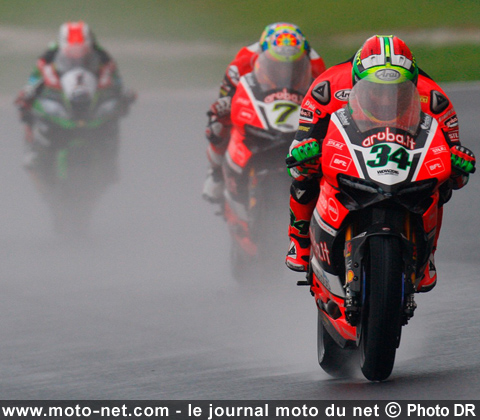 L'impressionnant orage responsable du report de la course des Supersport est passé, mais la pluie continue de tomber. La course des Superbike est naturellement déclarée "Wet", ce qui signifie qu'elle ne sera pas interrompue : les pilotes sont libres de passer dans les stands pour changer de pneumatiques...