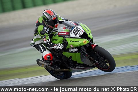 Tom Sykes, Sylvain Guintoli, Eugene Laverty, Maxime Berger et Jonathan Rea s'en donnent à cœur joie sur la piste, pendant que Carlos Checa rentre aux stands ! Le Champion du monde descend de sa moto et laisse ses mécanos s'affairer sur sa 1998 visiblement impossible à piloter dans l'état...