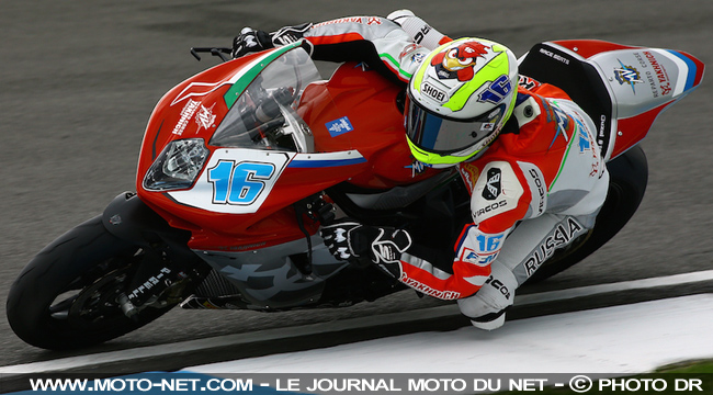 Kenan Sofuoglu prend un départ canon et poste sa Kawasaki n°54 devant Patrick Jacobsen, Kev Coghlan, Lorenzo Zanetti, Michael van den Mark, Jules Cluzel, Alessandro Nocco, Roberto Tamburini, Marco Bussolotti, Ratthapark Wilairot et Florian Marino, qualifié (sur le mouille) en 16ème place !
