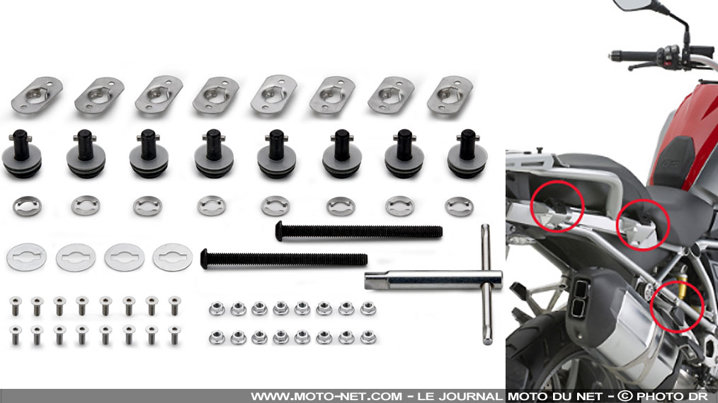 Le manufacturier italien Givi lance des kits de fixations rapides de supports de valises qui permettent d'ôter les platines en un clin d'oeil. Ces astucieux "RKIT" sont d'ores et déjà compatibles avec 8 motos et un maxi-scooter. Présentation.